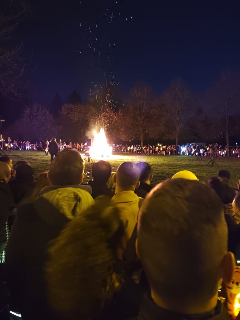 Schöne Traditionen behält man gerne bei. So war dies auch in diesem Jahr mit unserem Martinsfest. Ein kleines Martinsfeuer brannte in der Feuerschale auf dem Schulhof, dazu gab es Kaffee, Waffeln und Kuchen, Hot Dogs und Kinderpunsch und ein kleines Theaterstück (Die Mantelteilung), präsentiert von der Klasse 3a. Zum Abschluss spielte die Musikgruppe von Frau Dürhager am Feuer Laternenlieder und es sangen Große und Kleine kräftig mit. Dazwischen konnte gemalt und gebastelt werden, man konnte die selbst gebastelten Laternen bewundern oder man traf sich zu Gesprächen drinnen und draußen.