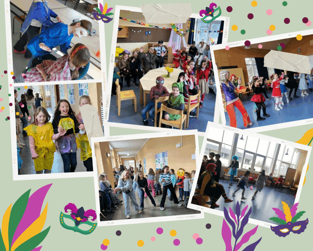 In der OGS wurde fröhlich Karneval gefeiert! Die Kinder bastelten mit viel Kreativität ihre eigenen Kostüme und Masken. Bunte Farben, glitzernde Verzierungen und fantasievolle Ideen verwandelten die OGS in ein echtes Karnevalsspektakel. Ein besonderes Highlight war die große Modenschau, bei der die Kinder stolz ihre selbst gestalteten Kostüme präsentierten. Mit Musik, Applaus und guter Laune wurde dieser Tag zu einem unvergesslichen Erlebnis für alle!