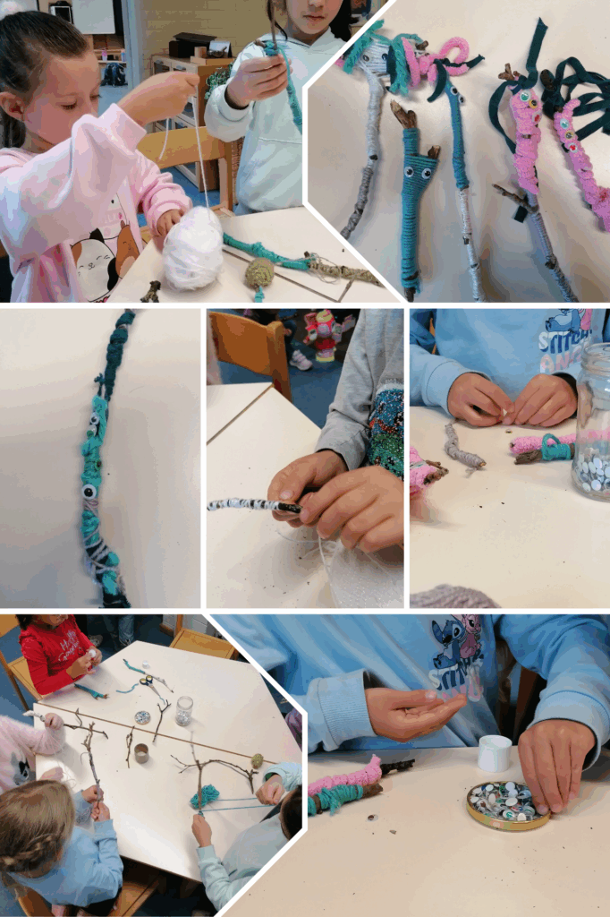 Bei unserer Bastelaktion haben wir einfache Stöcke in bunte Figuren verwandelt. Dazu haben wir sie mit Wolle umwickelt und mit lustigen Wackelaugen beklebt. So sind kleine, fröhliche Fantasiegestalten entstanden, die jedes Kind individuell gestalten konnte.