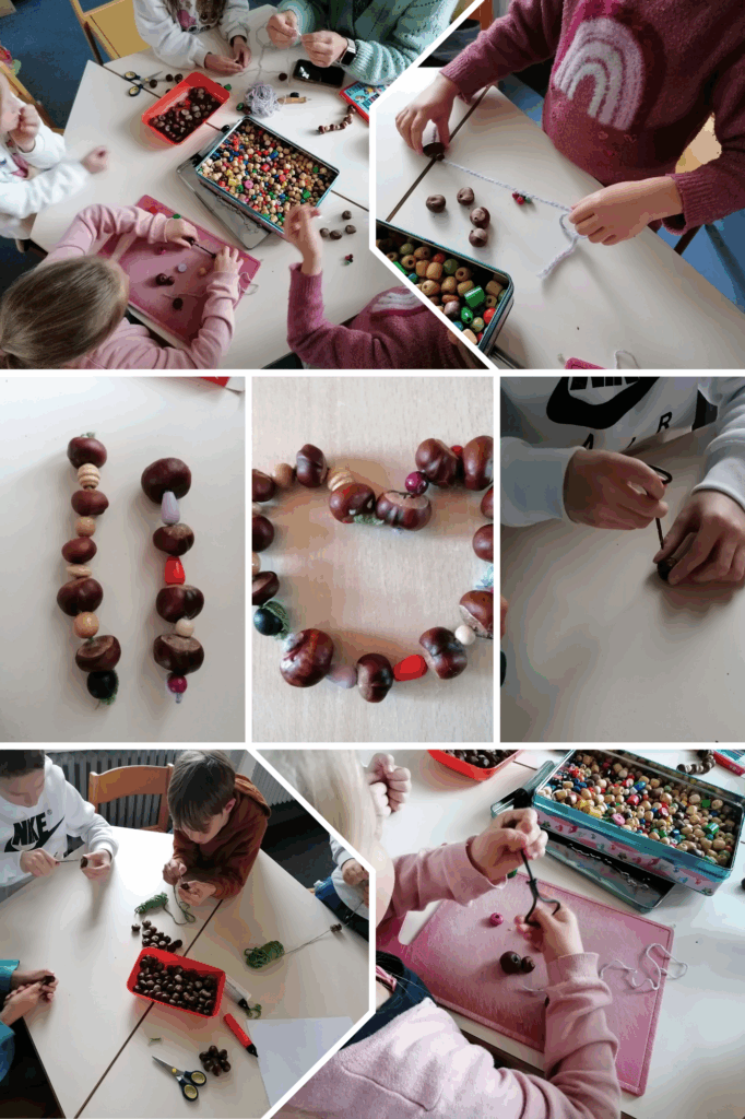 In der OGS haben die Kinder in dieser Woche ihre Kreativität entfaltet und eigene Lesezeichen gebastelt. Sie haben Kastanien und bunte Perlen verwendet und darauf fröhliche Gesichter gemalt. So entstanden kleine, individuelle Kunstwerke, die nicht nur beim Lesen Freude machen, sondern auch die Fantasie und Feinmotorik der Kinder fördern.