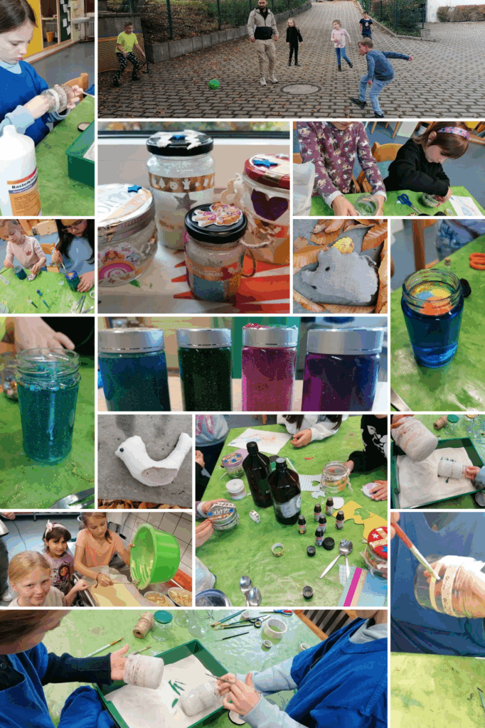 Außerdem bieten unsere pädagogischen Kräfte auch Aktivitäten an, bei denen die Kinder z. B. angeleitet Fußball spielen, basteln, malen, sich schminken oder werkeln (etc.) können. Am Nachmittag besteht außerdem noch die Möglichkeit, eine der AGs zu besuchen und sich hier auf unterschiedlichen Tätigkeitsfeldern zu erproben.