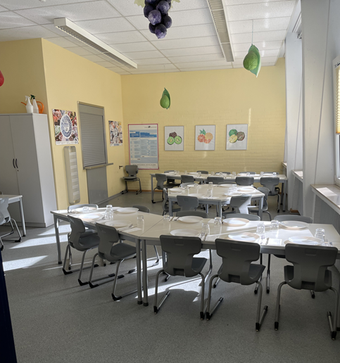 In unserer gemütlichen Mensa nehmen die Gruppen dann etappenweise ihre Mittagsmahlzeit zu sich.
