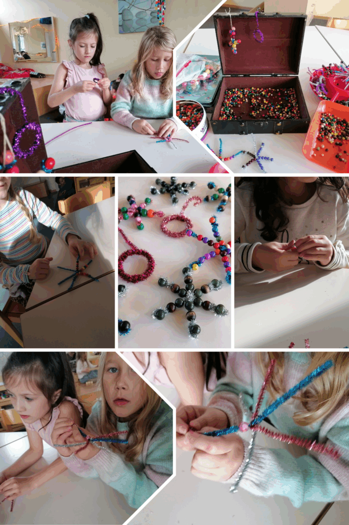 In der OGS haben wir diese Woche weiterhin fleißig Weihnachtsschmuck gebastelt. Mit viel Freude und Kreativität haben die Kinder glitzernde Pfeifenreiniger um Ringe gewickelt und daraus funkelnde Anhänger gestaltet. Außerdem entstanden aus Pfeifenreinigern und bunten Perlen schöne Sterne, die später unsere Weihnachtsbäume schmücken werden. Die Kinder hatten großen Spaß beim Gestalten und konnten dabei ihrer Fantasie freien Lauf lassen!