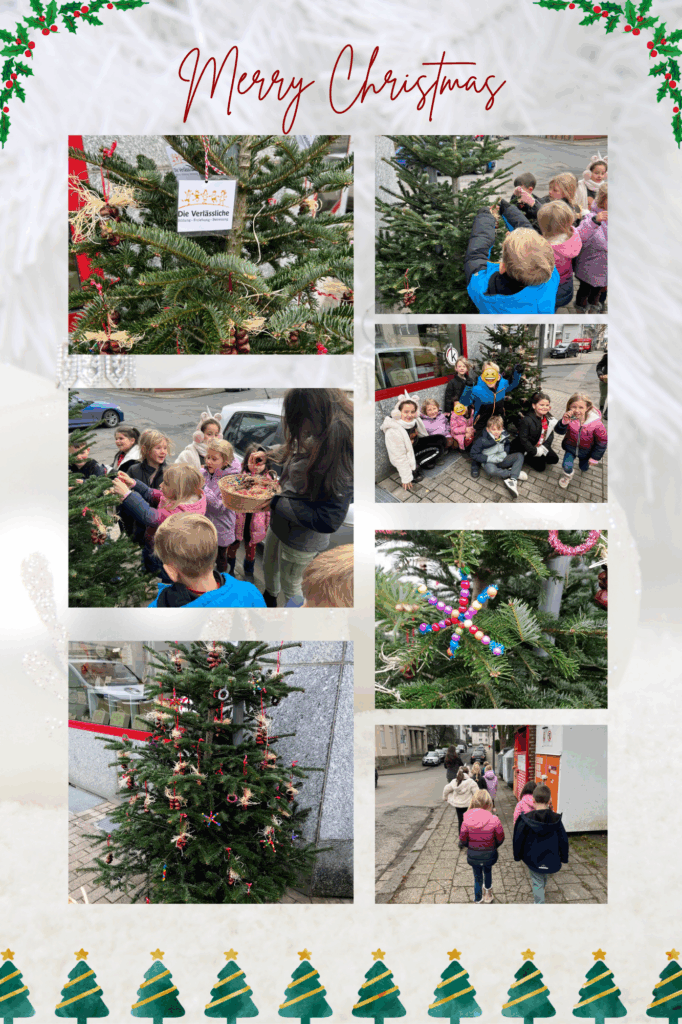 In dieser Woche durfte unsere OGS wieder ein besonderes Ritual pflegen: das gemeinsame Schmücken unseres Tannenbaums. Wie in jedem Jahr hat uns ein örtlicher Schreibwarenladen im Rahmen unserer langjährigen Kooperation einen wunderschönen Baum zur Verfügung gestellt, wofür wir uns herzlich bedanken. Diese Tradition bedeutet uns viel – und vor allem den Kindern, die jedes Jahr voller Stolz ihren eigenen Weihnachtsschmuck anbringen. In den vergangenen Wochen wurde in den Gruppen fleißig gebastelt. Mit großem Engagement, viel Fantasie und noch mehr Glitzer entstanden ganz unterschiedliche Dekorationen wie z. B. kleine Kränze aus Kastanien, funkelnde Sterne aus bunten Perlen und leuchtende Ringe aus Pfeifenreinigern. Die Mischung aus Naturmaterialien, Farben und individuellen Ideen lässt unseren Baum dieses Jahr besonders warm und festlich wirken. Ein herzliches Dankeschön an den Schreibwarenladen für die verlässliche Unterstützung – und an alle Kinder für ihren wunderbaren Einsatz. Jetzt kann die Weihnachtszeit in der OGS beginnen!