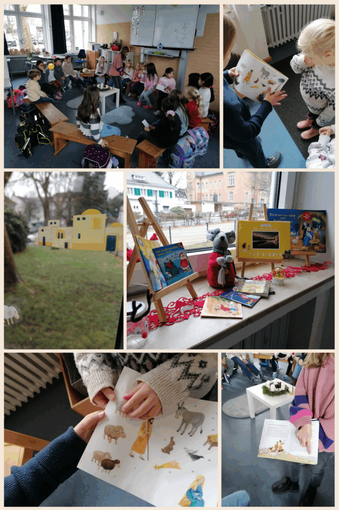 Zum Beginn der Adventszeit haben unsere Kinder in diesem Jahr eine besonders liebevolle Tradition aufgenommen: Gemeinsam gestalten sie Tag für Tag den Folien-Adventskalender „Rica auf dem Weg nach Bethlehem“. Dabei entsteht nicht nur ein großes, leuchtendes Fensterbild, sondern auch eine wunderbare Atmosphäre des Miteinanders. Jeden Tag treffen sich die älteren Kinder und die jüngeren Klassen in einem gemeinsamen Kreis – immer zur gleichen Zeit, als kleines tägliches Adventsritual. Die älteren Kinder übernehmen dabei eine sehr wertvolle Rolle: Sie lesen den jüngeren die jeweilige Episode aus „Rica auf dem Weg nach Bethlehem“ vor. Mit großer Aufmerksamkeit hören die jüngeren Kinder zu, folgen Ricas Reise und lassen sich in die Geschichte hineinnehmen. So entsteht ein ruhiger Moment im oft lebhaften Schulalltag, auf den sich alle freuen. Nach dem Vorlesen darf täglich ein Kind das neue Folienbild auswählen und an das Fenster kleben. Mit jedem Tag wächst so ein farbenfrohes, stimmungsvolles Bild, das Ricas Weg begleitet und unser OGS-Fenster immer mehr in ein weihnachtliches Licht taucht. Für die Kinder ist es etwas ganz Besonderes, zu sehen, wie aus vielen kleinen Teilen ein großes Ganzes entsteht – und dass alle daran beteiligt sind. Diese gemeinsame Aktion verbindet die Kinder über Altersstufen hinweg, stärkt das Vorlesen, das Zuhören und das Miteinander, und bringt jeden Tag ein wenig Adventszauber in unsere Räume.
