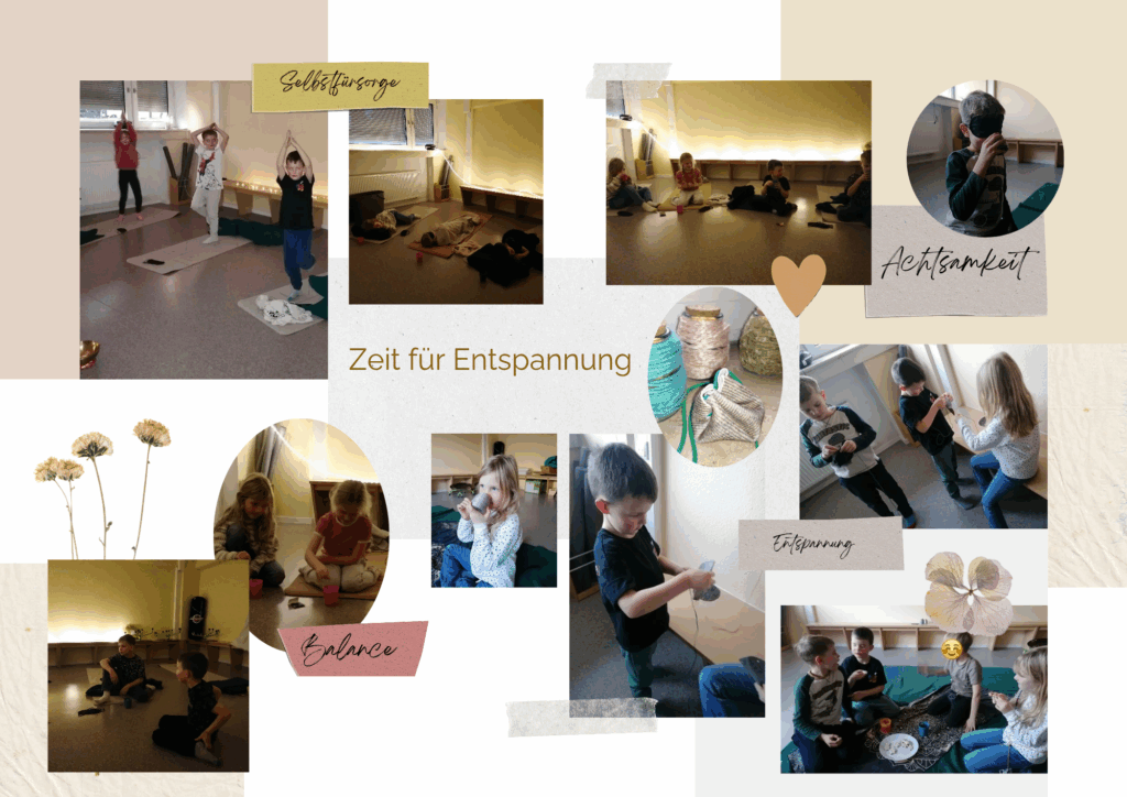 In unserer Entspannungs-AG herrschte eine gemütliche Atmosphäre: Lichterketten, angenehme Düfte und weiche Decken machten den Raum zu einem kleinen Rückzugsort. Die Kinder hörten Geschichten, die von einer Klangschale begleitet wurden, gingen auf eine Duftreise und erlebten eine achtsame Sinnesreise, bei der sie verschiedene Düfte erkennen mussten. Anschließend konnte jedes Kind einen eigenen Duftbeutel zusammenstellen. Nach jeder Einheit haben wir uns zusammengesetzt und bei einer Tasse Tee oder Kakao den Nachmittag ruhig ausklingen lassen.