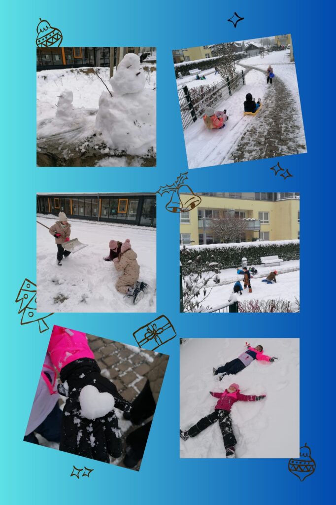 Nach den Weihnachtsferien erwartete die Kinder auf dem Schulhof eine winterliche Überraschung: Viel Schnee hatte den Hof in eine kleine Winterlandschaft verwandelt. Mit großer Freude bauten die Kinder kleine Schneemänner und nutzten die Gelegenheit zum Rodeln. Die gemeinsame Zeit im Schnee sorgte für viel Bewegung, Spaß und fröhliche Gesichter in der OGS.