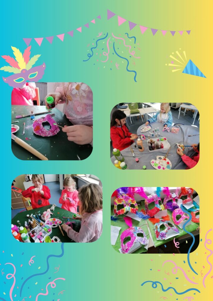 In der OGS wird es bunt und fröhlich, denn die Karnevalsvorbereitungen laufen auf Hochtouren. Die Gruppenräume werden gemeinsam mit den Kindern geschmückt und in echte Karnevalswelten verwandelt. Mit viel Freude und Kreativität bastelten die Kinder ihre eigenen bunten Girlanden. Dabei entstanden aus Papier, Glitzer und Farbe fröhliche Dekorationen, die die Räume in eine närrische Stimmung versetzen. Ausserdem haben die Viertklässler mit den Erstklässlern wunderschöne Karnevalsmasken aus Gips gestaltet. Mit viel Geduld und Teamarbeit halfen die Großen den Kleinen beim Anfertigen der Masken. So entstanden viele einzigartige und farbenfrohe Kunstwerke. Neben der Bastelaktion wurden außerdem fleißig Tänze einstudiert, die bei unserer Karnevalsfeier aufgeführt werden. Mit viel Freude und Begeisterung haben die Kinder gemeinsam geübt.